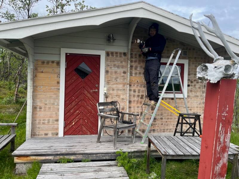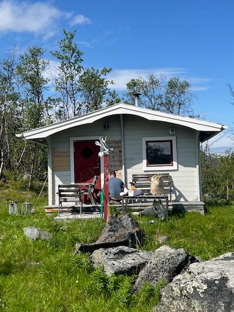 Fred hittade den enda tältbara platsen på stugtomten.