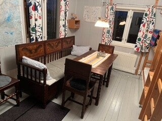 Jag och Birgitta har nu varit till Abisko med ved och våran mormor Anna-Lisas gamla möbler som Sven övertog när hon dog. Här kommer bilder på hur det blev när vi fixade till den nya möbleringen. Det känns som att möblerna nu hittat hem (nästan) eftersom mormor och morfar köpte dem på 30- talet när de bodde på Metobs (som nu heter Meterologen) i Riksgränsen.